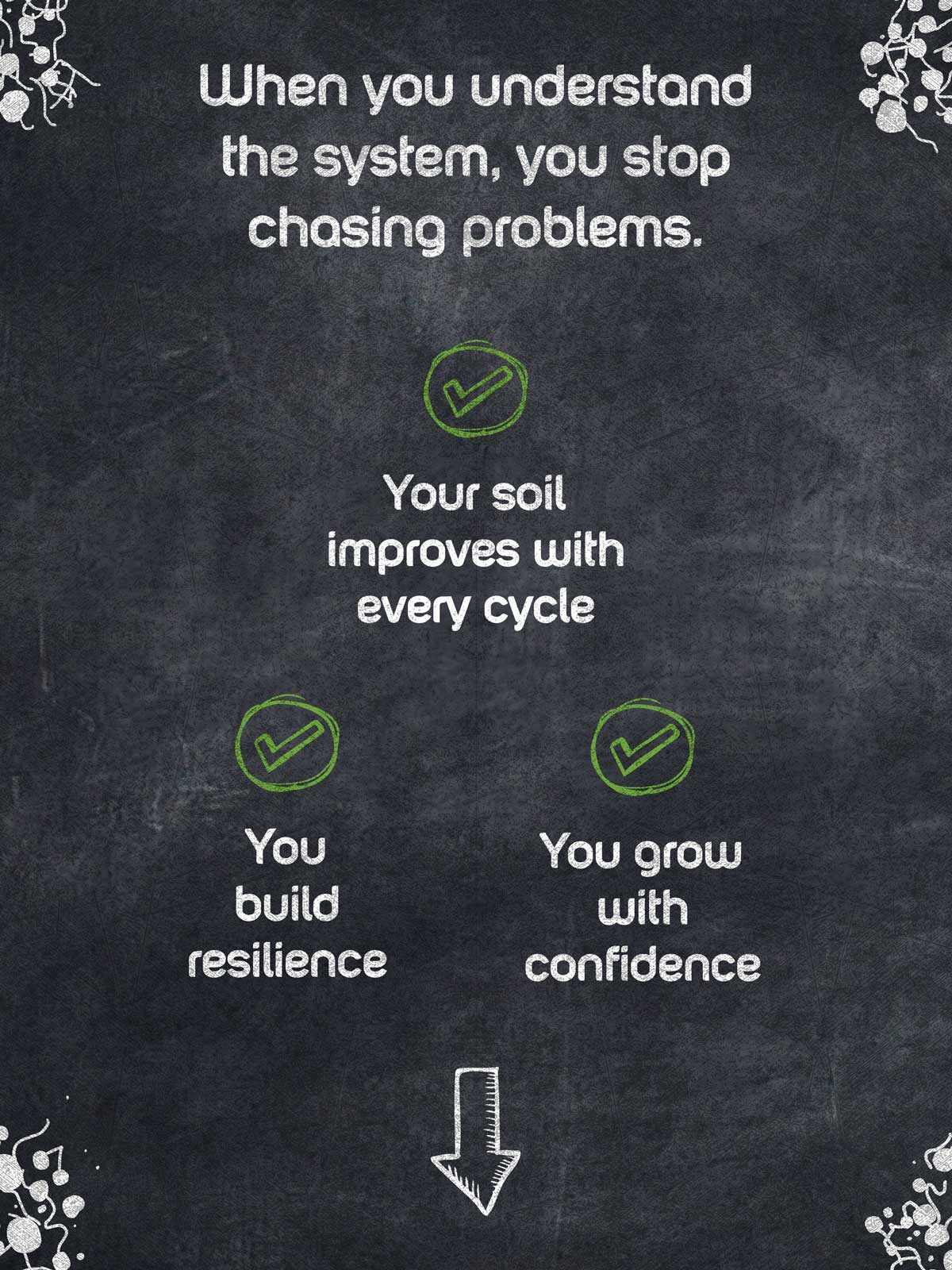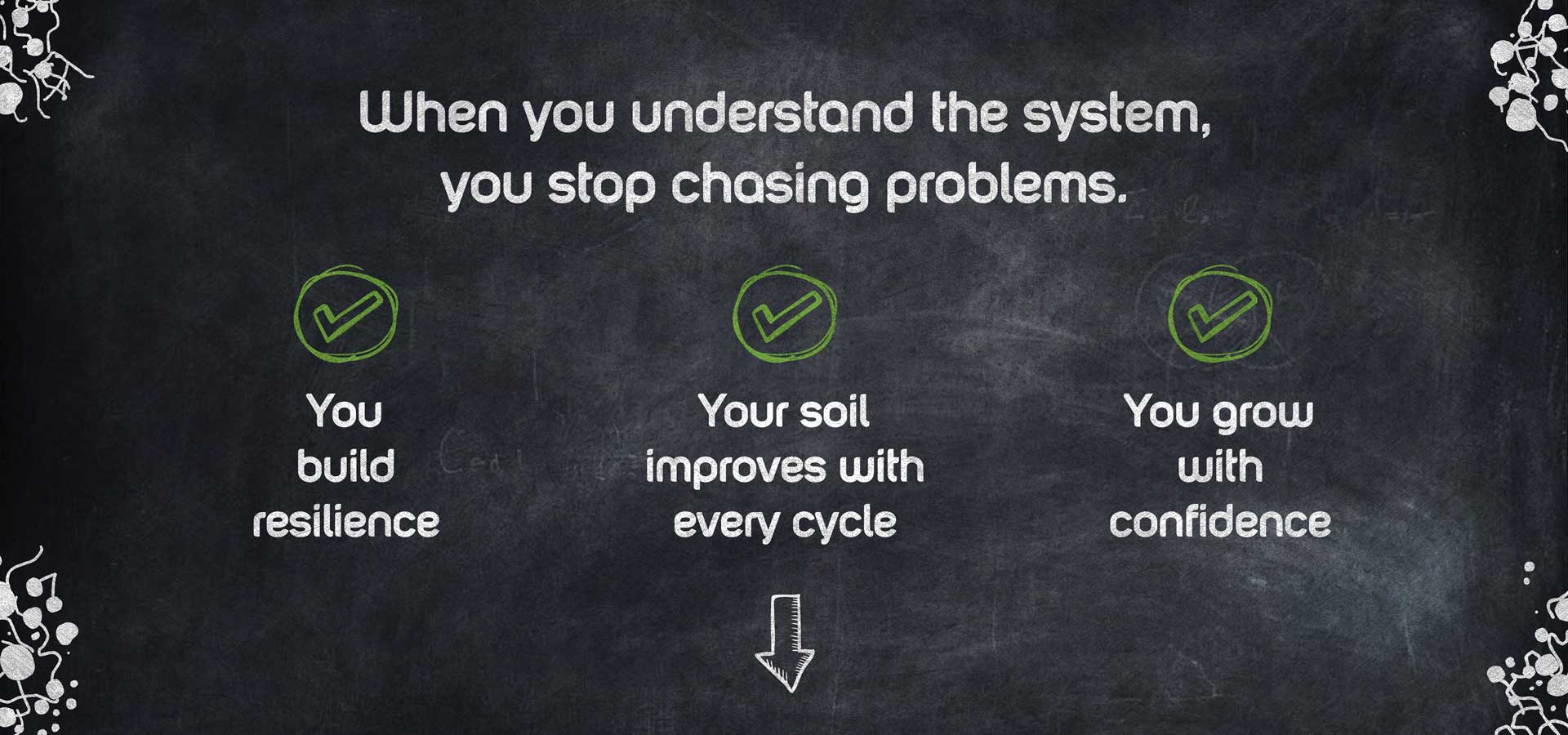 A practical guide to living soil, explaining how biological nutrient cycling works and the key principles behind building a stable, reusable growing system.