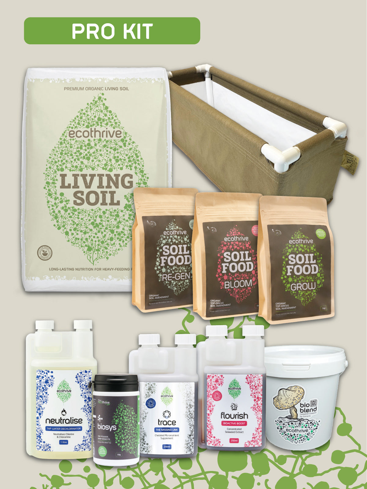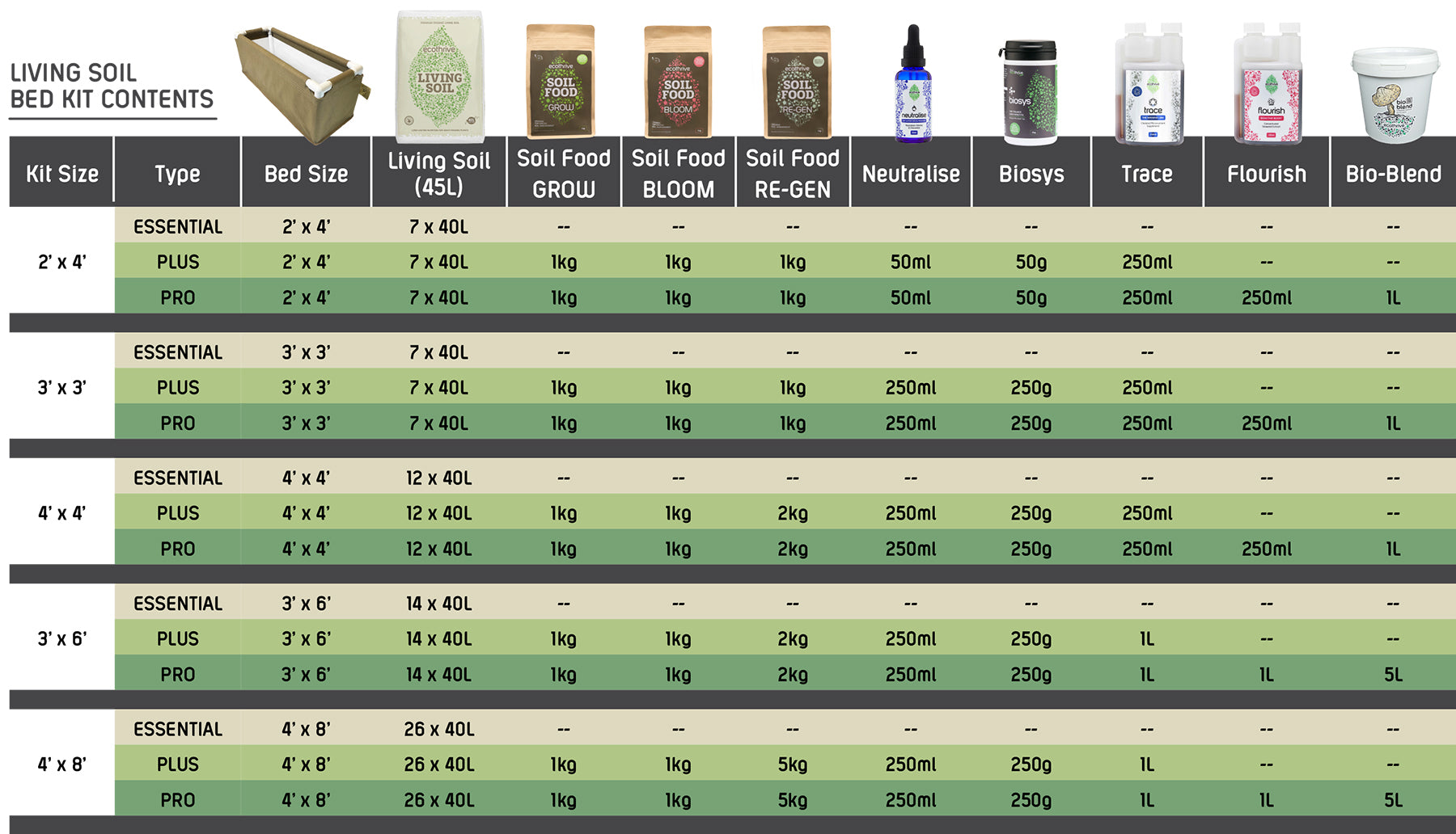 Designed for serious growers who want to give their plants the very best! You will receive your preferred bed size (2 x 4ft, 3 x 3ft, 3 x 6ft, 4 x 4ft or 4 x 8ft) along with just the right quantity of Ecothrive Living Soil plus Soil Food, Trace, Biosys and Neutralise, Flourish and Bio Blend.