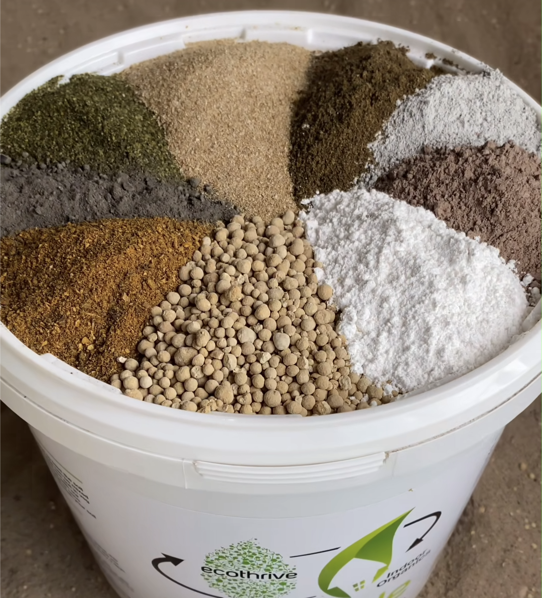 Lightly dust the surface of each 40-50L pot with 1-2 tablespoons (15-30ml). Water as usual after application. When using Ecothrive Living Soil, top-dress once in late veg-early flower and again 3-4 weeks later. Apply the last top dress 4-5 weeks before harvest.
